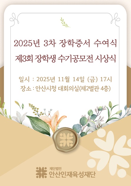 2025년 장학증서 수여식 및 제3회 장학생 수기공모전 시상식 안내